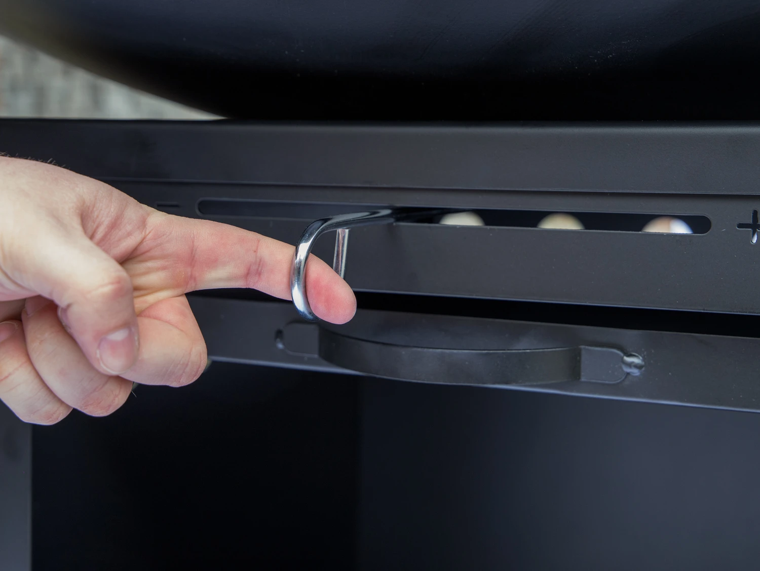 Zum Anfeuern werden Holzscheite durch die Öffnung in der Mitte auf den Feuerrost in der Schale gelegt und mit geeignetem Anzündmaterial entzündet. Auch eine Kombination aus Briketts und Scheitholz ist problemlos möglich. Für die optimale Belüftung des Feuers sorgt ein stufenlos verstellbarer Lüftungsschieber aus Edelstahl. Idealerweise wird er beim Anfeuern zunächst komplett geöffnet und später dann so eingeregelt, dass ein gleichmäßiges und ruhiges Flammenbild entsteht.