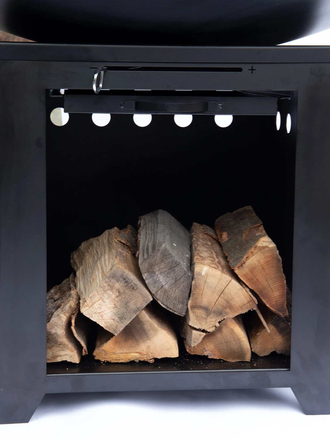 - großes Holzfach im Sockel – ideal zur Aufbewahrung von Feuerholz