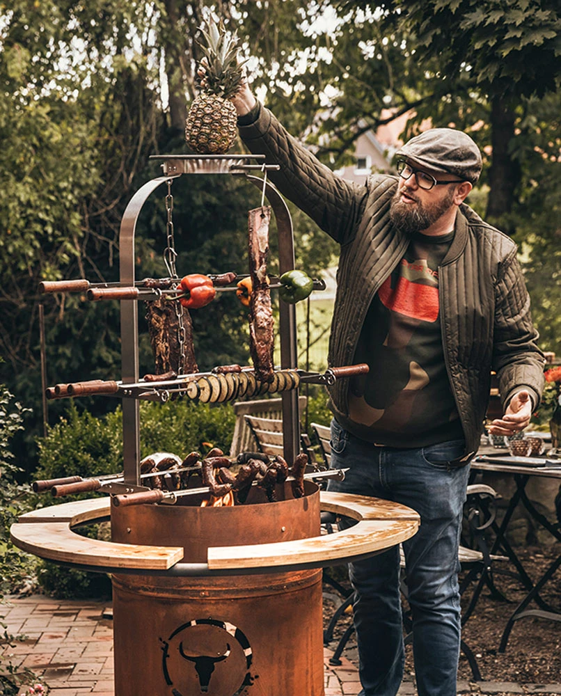 - inkl. Asado Grillaufsatz zum Spießgrillen direkt über offenem Feuer