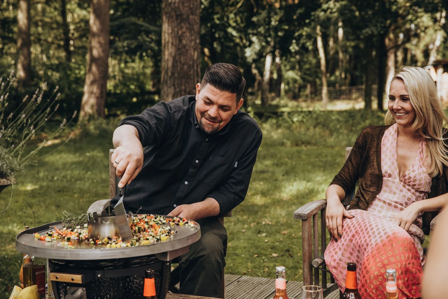 Da die Feuerplatte einen größeren Durchmesser als der Keramikgrill besitzt, ergeben sich unterschiedliche Temperaturzonen und somit die ideae Basis für sämtliche Gerichte. Braten sie z. B. das Fleisch zunächst nahe der Mitte der Platte scharf an und lassen es dann am äußeren Rand nachziehen bis zum perfekten Garpunkt. Auch Burger-Buns oder andere Beilagen können prima außen angeröstet werden, während die Patties in der Mitte bei hoher Temperatur gegrillt werden.