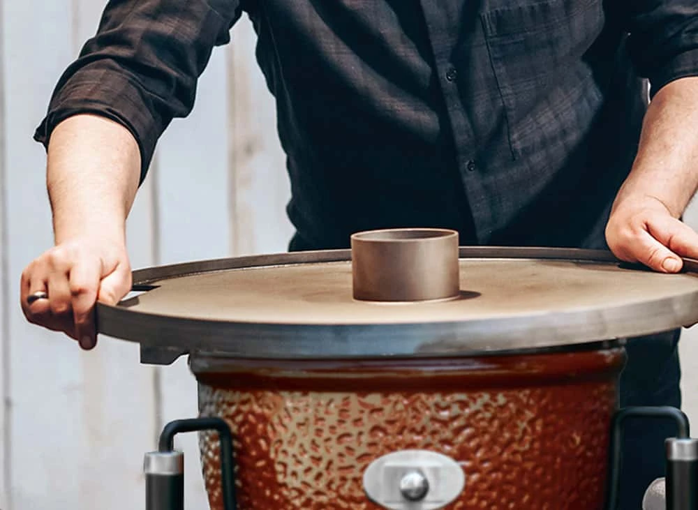 Verwandeln sie ihren Monolith ICON in einen Holzkohlegrill der besonderen Art. Die massive Stahlplatte speichert mit einer Materialstärke von 6 mm die Hitze besonders gut, so dass scharfes Anbraten auf der Platte spielend einfach möglich ist. Ideal für Fleisch, Gemüse, Burger, Kartoffeln oder ein Frühstück vom Grill mit Ei und Bacon.
