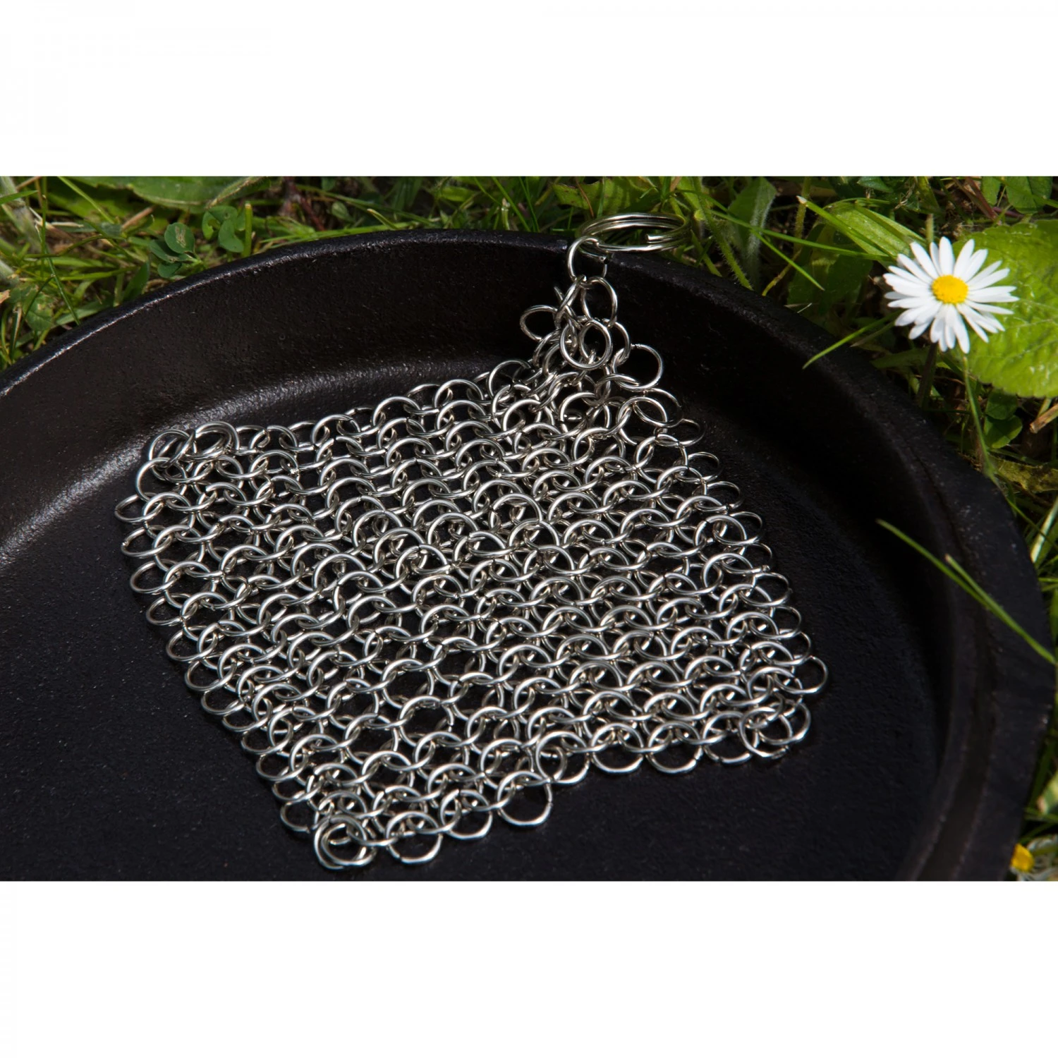 Seine Stärke spielt das robuste Edelstahlnetz beim Entfernen von eingetrockneten Speiseresten von Gusseisen, Schmiedeeisen und sogar Edelstahl aus. Egal ob Grillrost, Dutch Oven, oder Grillpfanne , der Ringreiniger entfernt Rückstände mühelos und rein mechanisch.