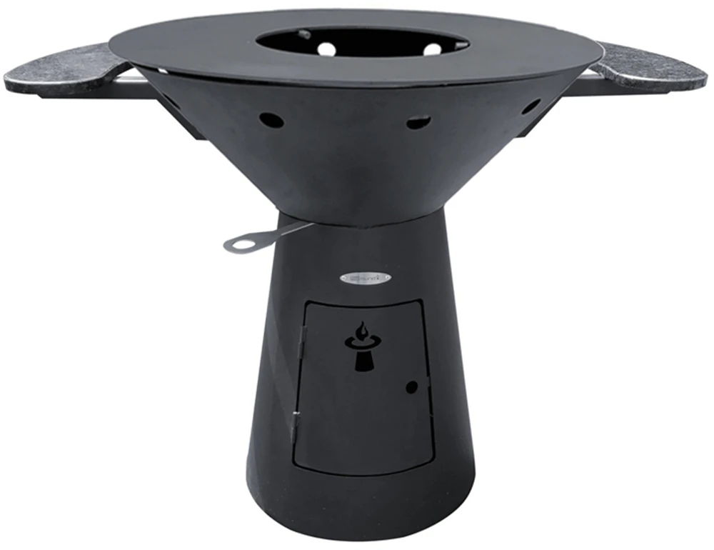 Die Remundi Feuerstelle Phönix L ist serienmäßig mit einer Ø 99 cm Grillplatte und 2 abnehmbaren, schwarzen Granitablagen ausgestattet. Die Feuerstellen der Black Serie sind aus pulverbeschichtetem Stahl gefertigt und bieten eine besonders edle Optik.