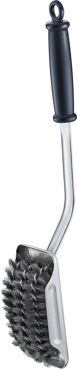 Gefertigt ist die robuste Bürste aus rostfreiem Edelstahl für Stabilität und eine lange Haltbarkeit. Der lange, massive Bürstenstiel ermöglicht eine kraftvolle Reinigung. Für ein angenehmes Handling sorgt ein runder Kunststoffgriff – ausgestattet mit einer praktischen Öse zum Aufhängen.