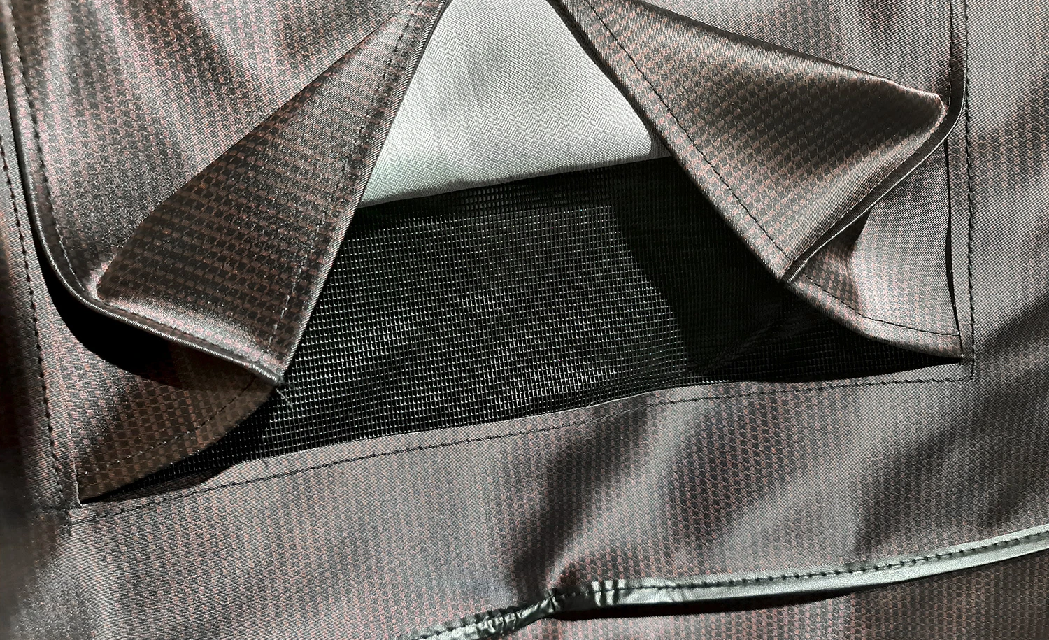 Schutz und gutes Aussehen schließen sich bei dieser Haube nicht gegenseitig aus. Das leicht rötlich schimmernde, matte Material glänzt edel changierend in der Sonne und ist ein echter Hingucker.